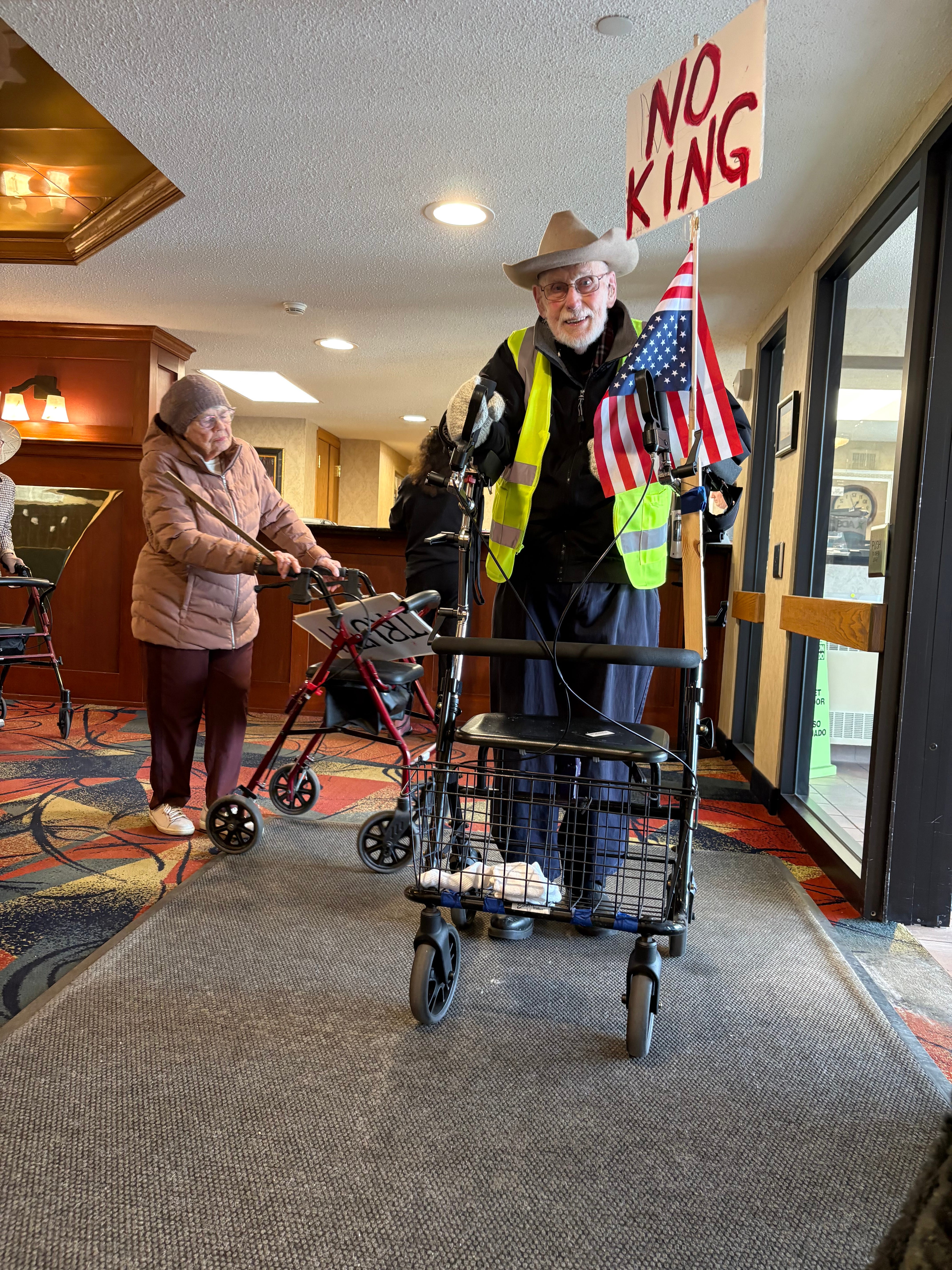 3/28 St. Louis Park, MN. Senior on his way to sidewalk protest.