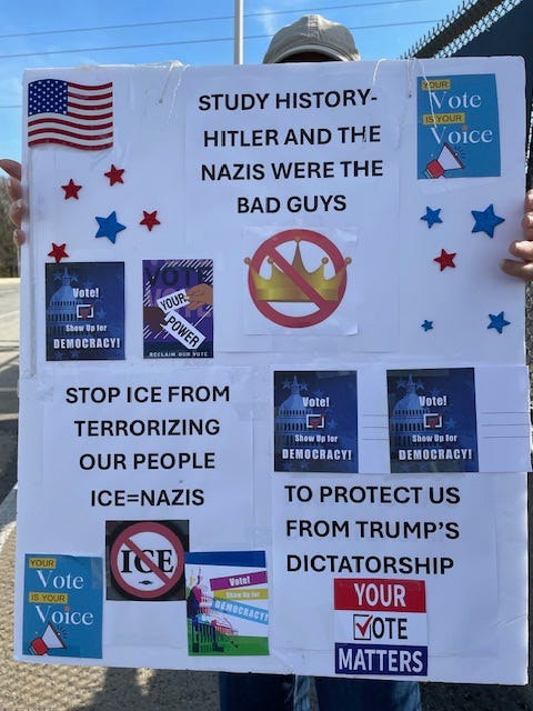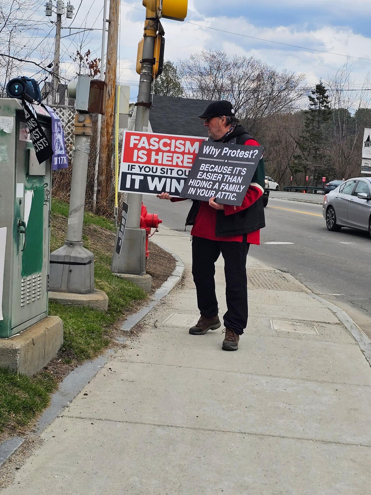 This individual has since started his protest in response to the Iran War every Wednesday from 10 to 2 and invites others to join.