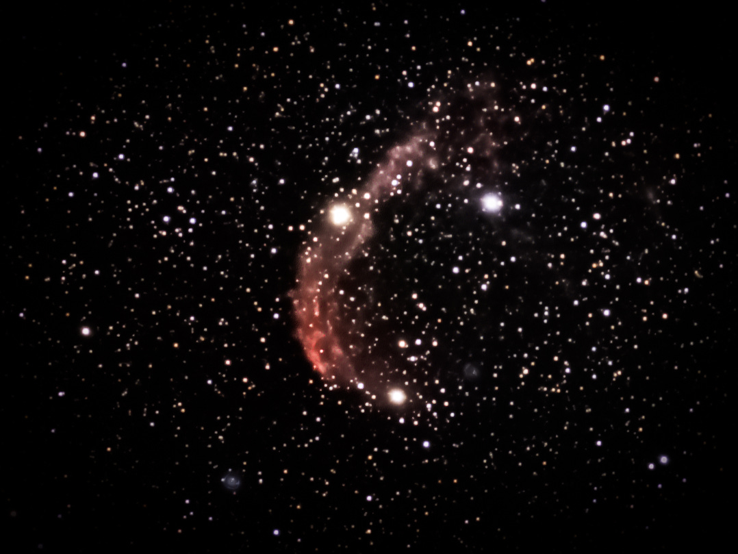 Post Script: The Crescent Nebula, 5,000 light years from Earth, 25 light years across. I chose this photo becuase it features three stars in the foreground that suggest the “three-body problem” in physics. Taken on 7/15/24 in Los Angeles, CA. Two hour exposure.