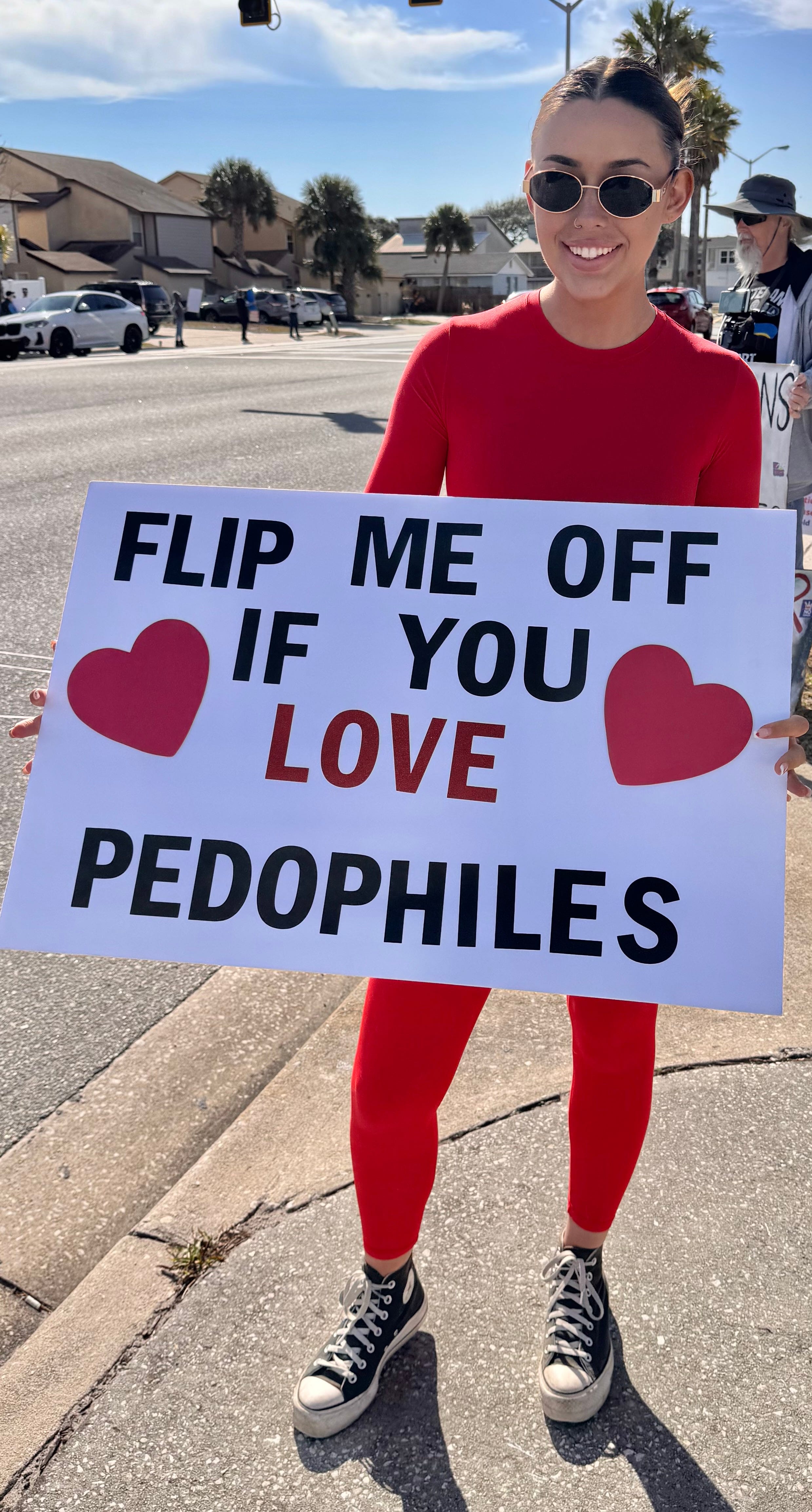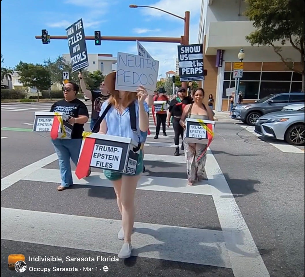 Justice for Survivors (Pop-Up) Protest. A dozen or so brave Americans continually crossing the four crosswalks surrounded by another twenty protestors on all for corners. All of this and more happening in MAGA-t centric Sarasota, FL.