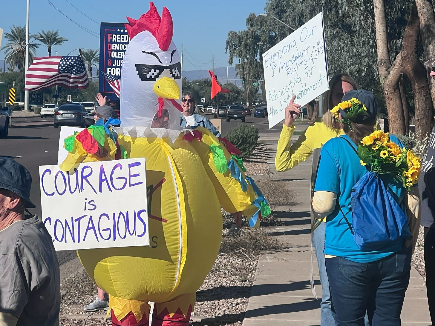 Cottonwood, AZ, Camp Verde Indivisible organizes the "Cottonwood Corner" protest (corner of Highways 260 and 89A) every Sunday, 2-4 pm.