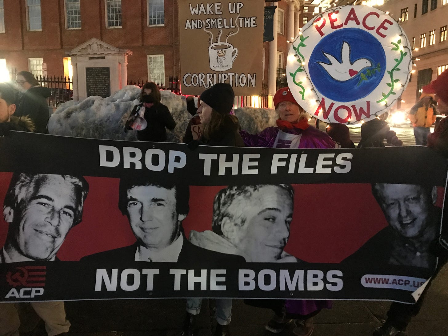 The DOJ has gone into silent mode about the Epstein files, hoping that Trump’s illegal war on Iran will provide cover for Pam Bondi’s cover-up of Trump’s involvement in Epstein’s sex trafficking enterprise. As we continue to raise our voices in the streets, justice for the Epstein victims and accountability for the perpetrators must be part of our messaging. We cannot look away from one set of crimes because of the unfolding disaster in the Middle East.