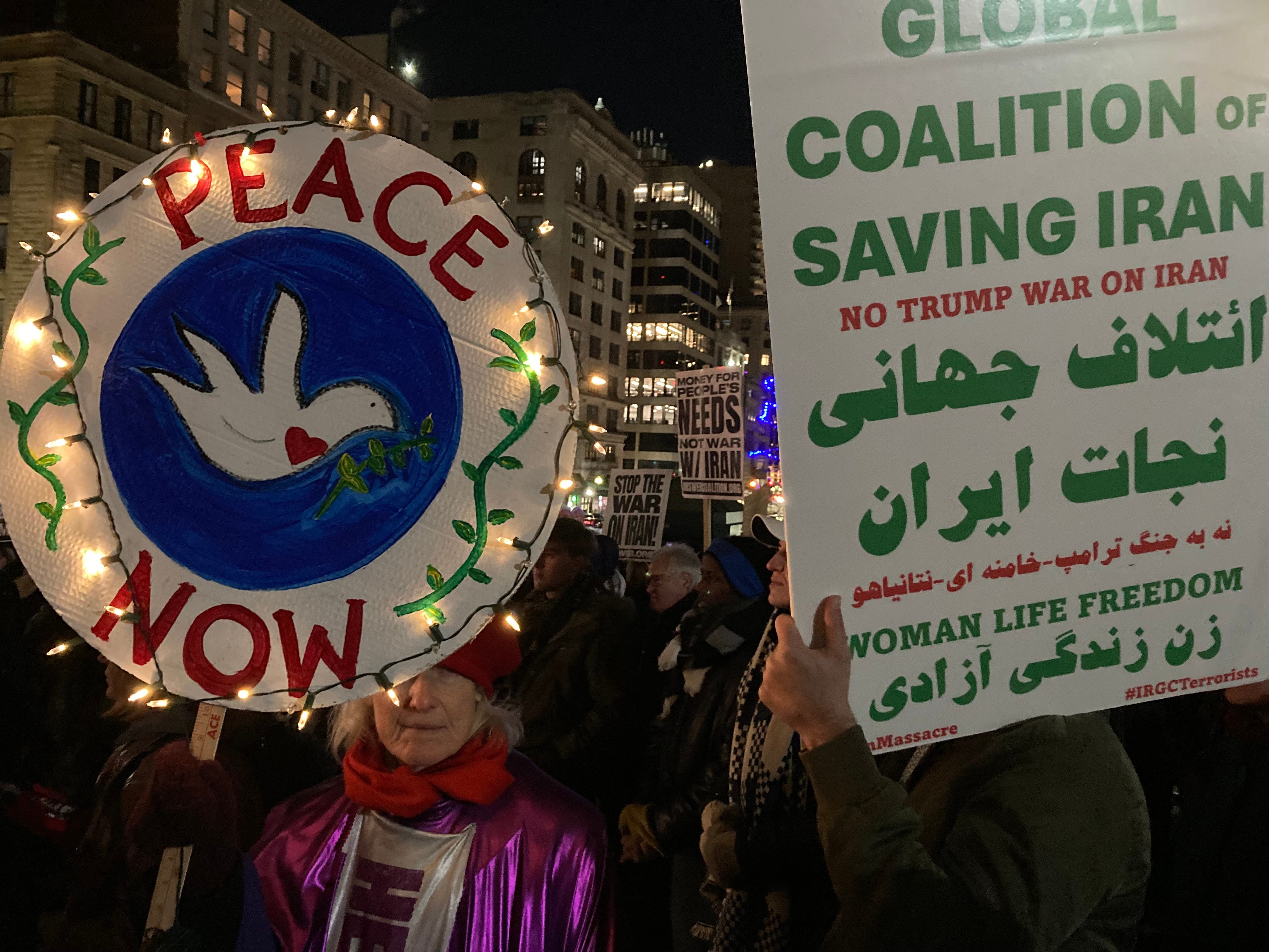 Boston's Stop the War with IRAN protest on the Boston Common at the corner of Park Street and Tremont Street, tonight, March 2nd, 2026. The protest was co-hosted by several different groups including Mass Peace Action and Jewish Voice for Peace