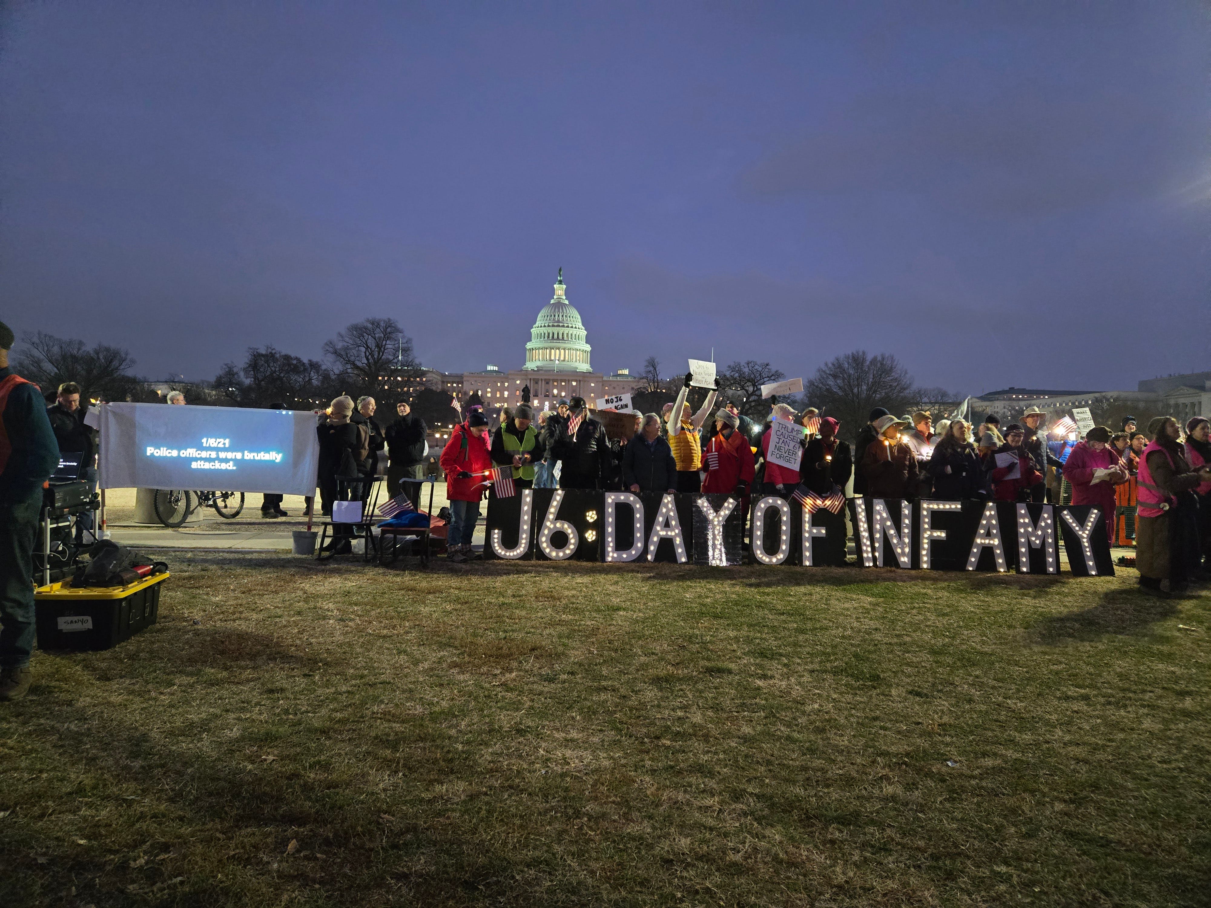 Third Act DMV organized a vigil at the Capitol to mark the 5-year anniversary of the Insurrection. The DC Rapid Response Choir joined us and we had a slide show featuring photos from that wretched day which we must never forget.
