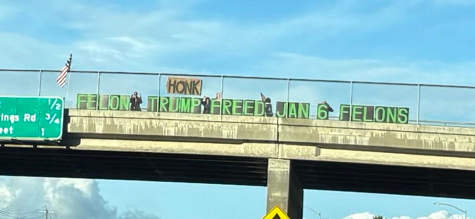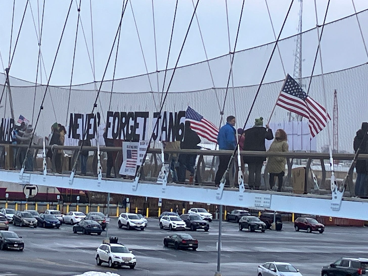 On this 5th anniversary of the horrendous assault on our Capitol, our North Country Resilience Visibility Brigade went to the northernmost I-93 overpass in Franconia Notch to display our messages. The actions of the current US regime has horrified and angered us. We the people will not be silent. We will continue to stand against tyranny.