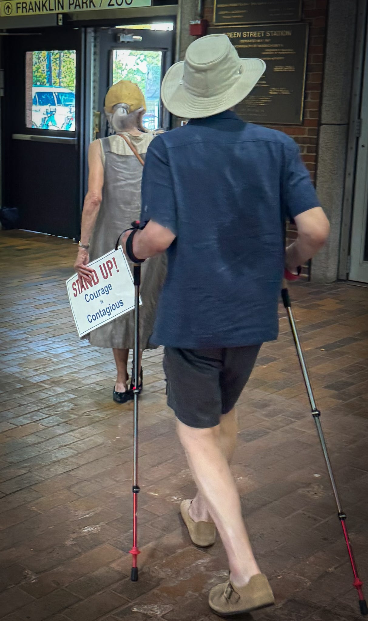 The couple in the photo had no idea that they were serving as an inspiration to Curt—and many others. Like the couple in the picture, we may never know when our example of courage will inspire others who are discouraged or anxious. No act of resistance is wasted effort! Our actions ripple through the ether, touching others in unseen ways. Be the resistance! Manifest courage! Provide the shoulders on which others will stand!