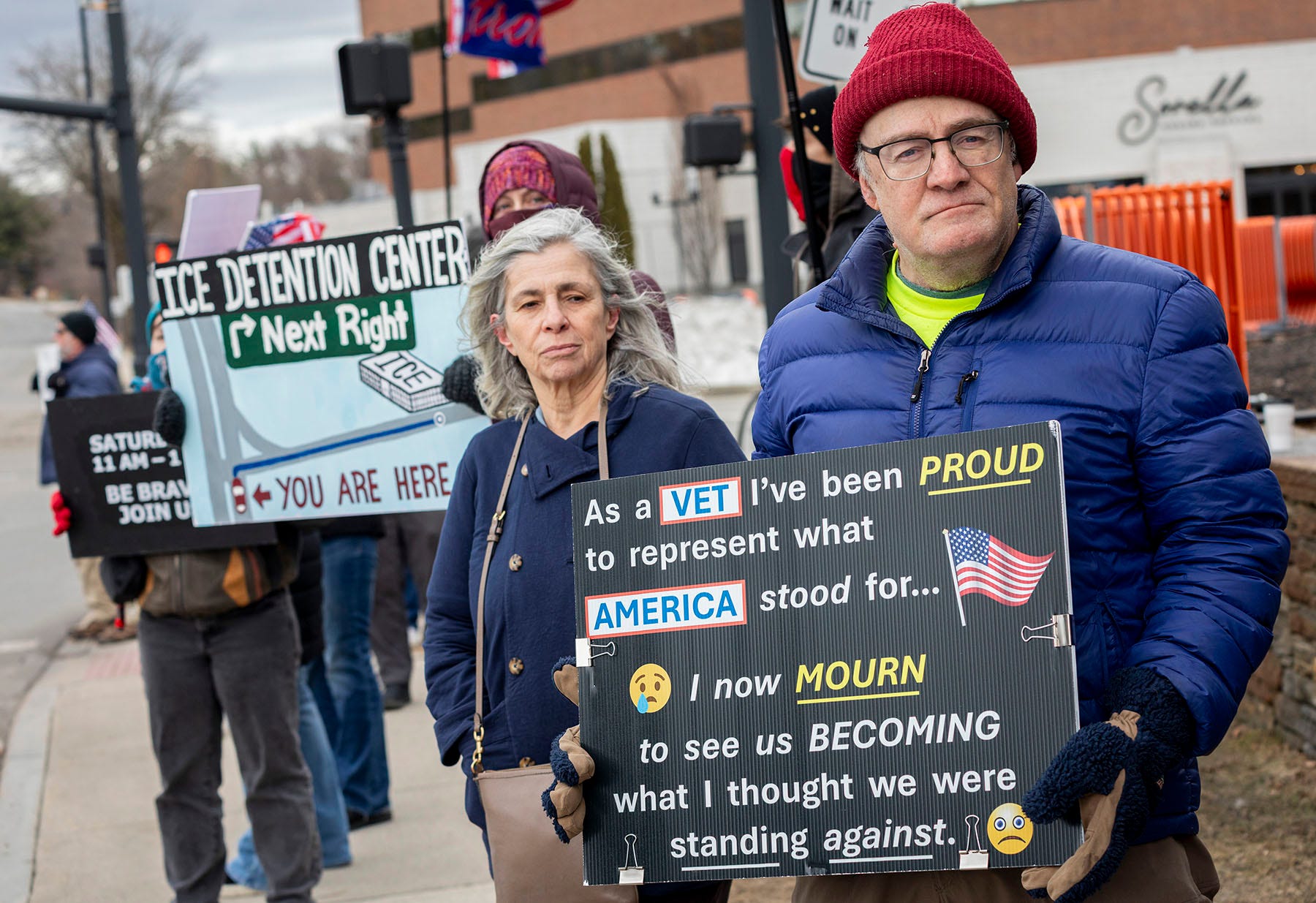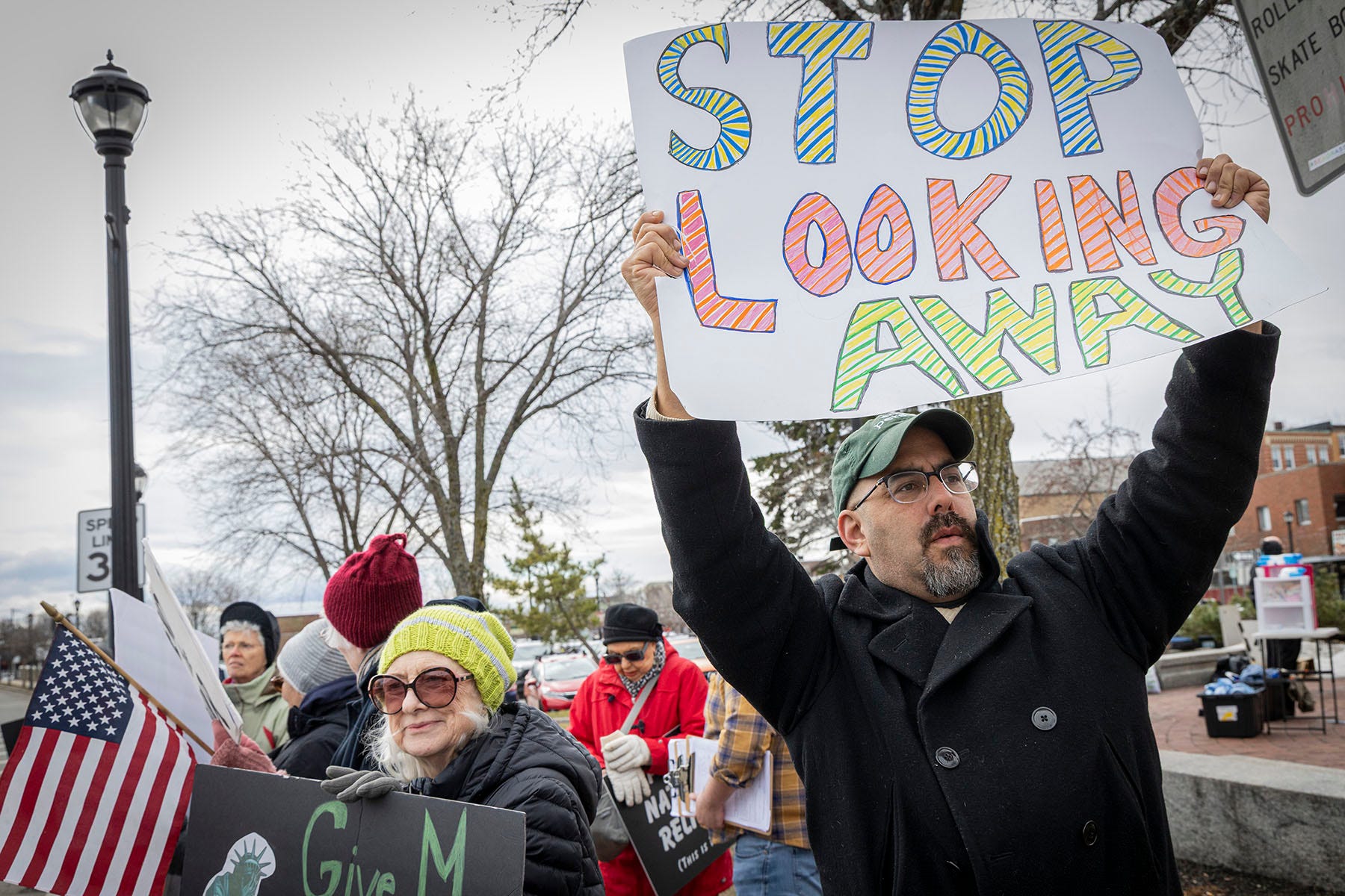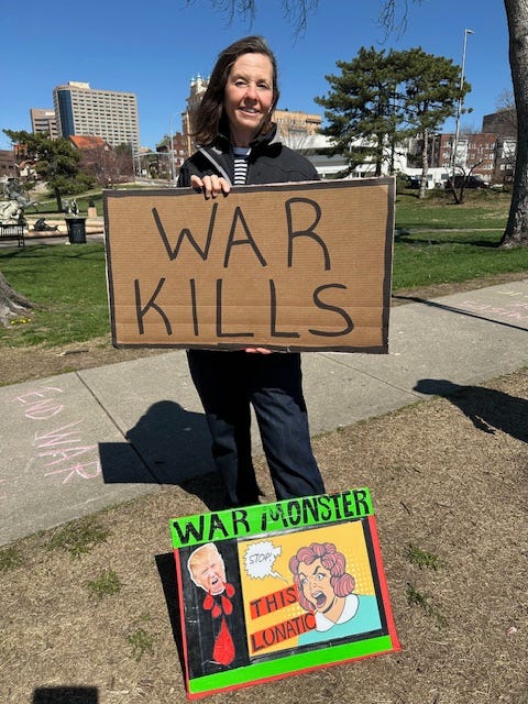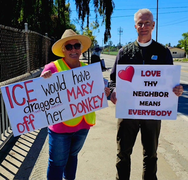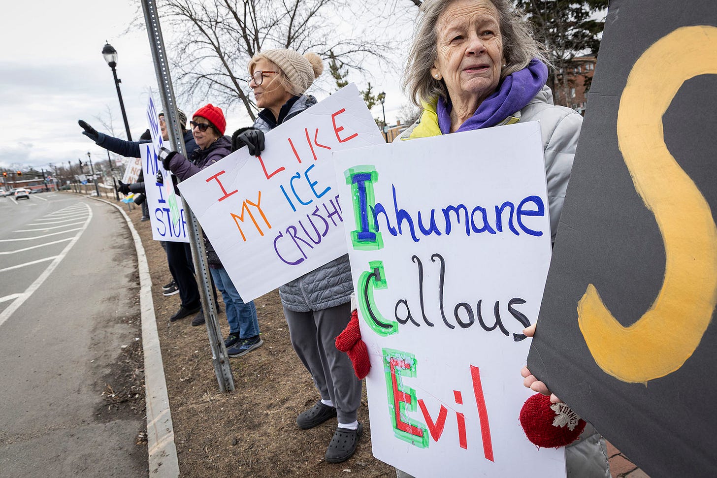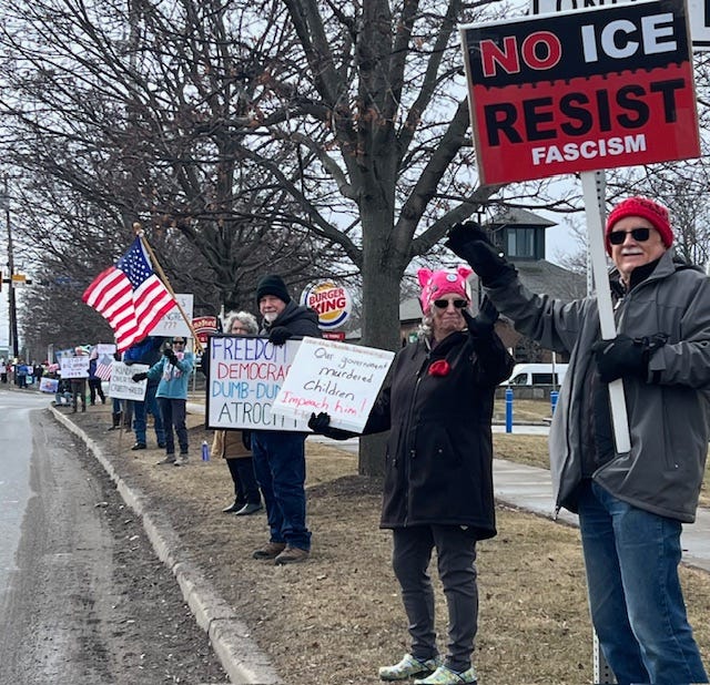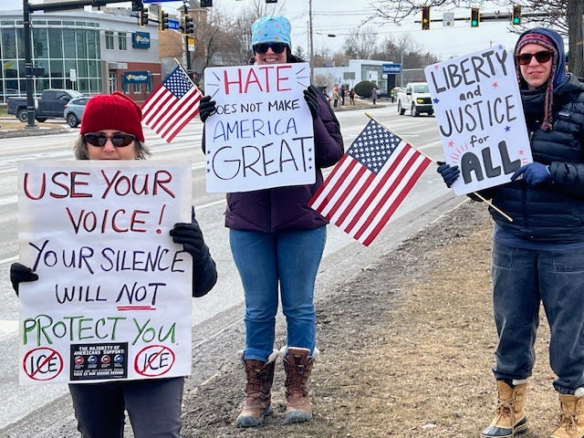 We stood with about 40 protesters on a Saturday (they are there every day now) on a busy intersection just down the road from the ICE detention center in Burlington, MA.