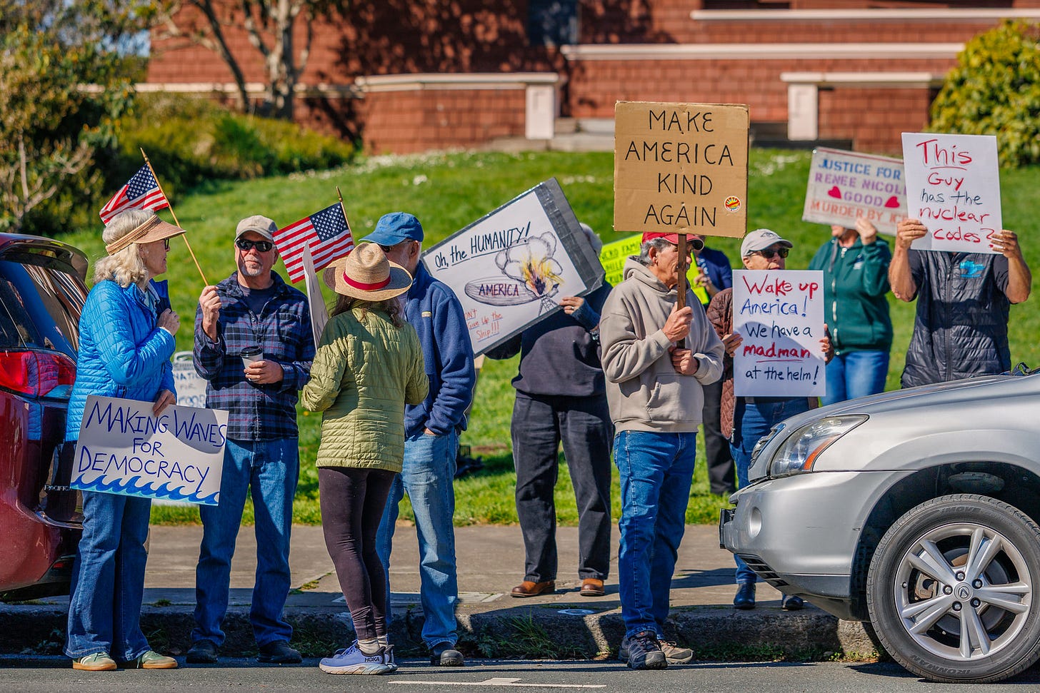 Petaluma Indivisible in California - weekly group of 50 folks every Thursday and Saturday, plus Signs of Fascism on Tuesdays