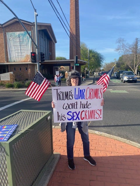 Protest in Sacramento, CA neighborhood on 3/10 from 4:30-5:30pm. A couple of women rolled down their car window to thank us for being out there so I invited them to join us the following week!