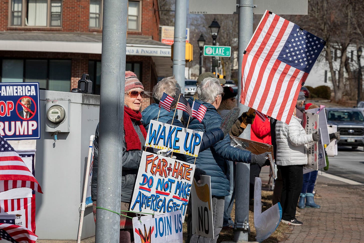 People stood at Riley Plaza in downtown Salem to protest Trumps policies. The protest occurs weekly on Saturdays from 12-1.