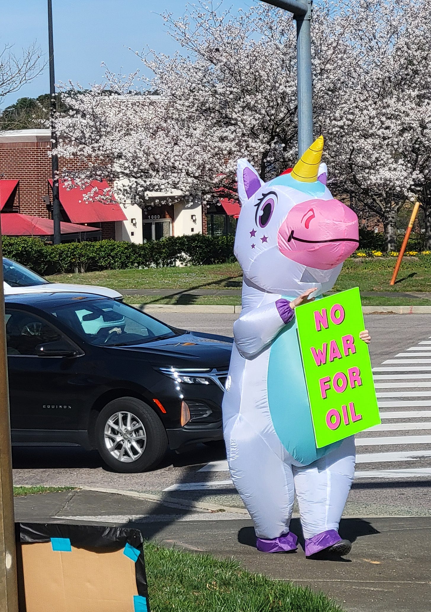 We had 17 people (and a unicorn!) at our Defend Democracy Saturday demonstration in Apex, NC this morning. We hold these weekly demonstrations as one of many Engaged Defenders for Democracy's (ED4D) scheduled visibility events each week.