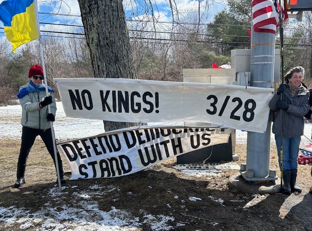 On Saturday, March 14th, Indivisible Progressive Watertown, MA, co-hosted their monthly Stand Out for Democracy and against ICE. We called our protest Spring Into Action - Get ready for No Kings III.