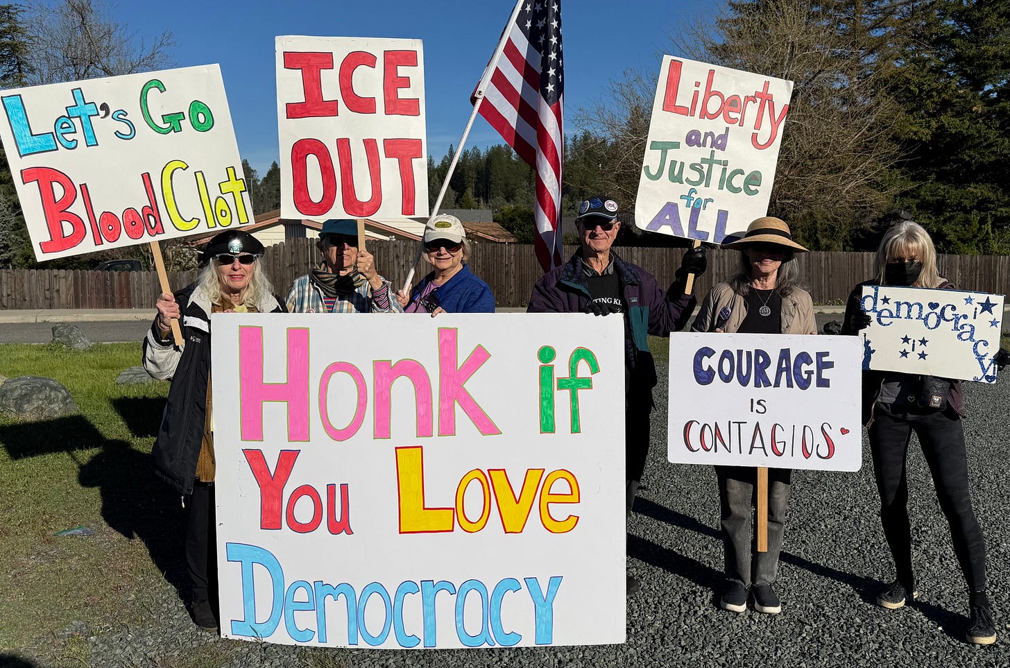 Loud and proud at our Saturday protest - Indivisible Mendocino Coast -- Photos, Bob Dominy