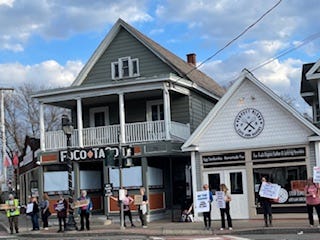 A pop-up protest on well-travelled Rt 179. Many thumbs up & honks from tourists & residents alike.