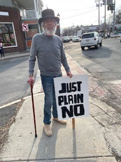 A few days ago a student from Syracuse University drove through town while we were protesting. He was so surprised to see protestors in a small town that he parked and came over to photograph us.