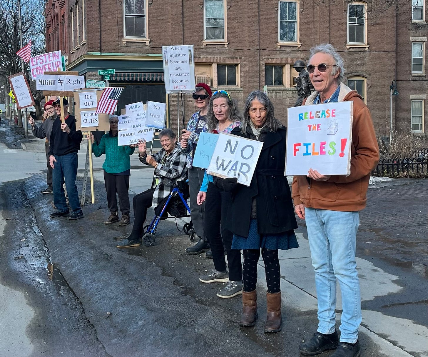 These pictures are from the 55th weekly STAND UP & SPEAK OUT protest in Delmar, NY (outside Albany). Fifty plus enthusiastic and dedicated folks turned out during rush hour and elicited so much honking from drivers who agreed with us. Over the past year, during bitter cold and scorching temperatures we’ve formed a resistance community to carry us through this difficult time.
