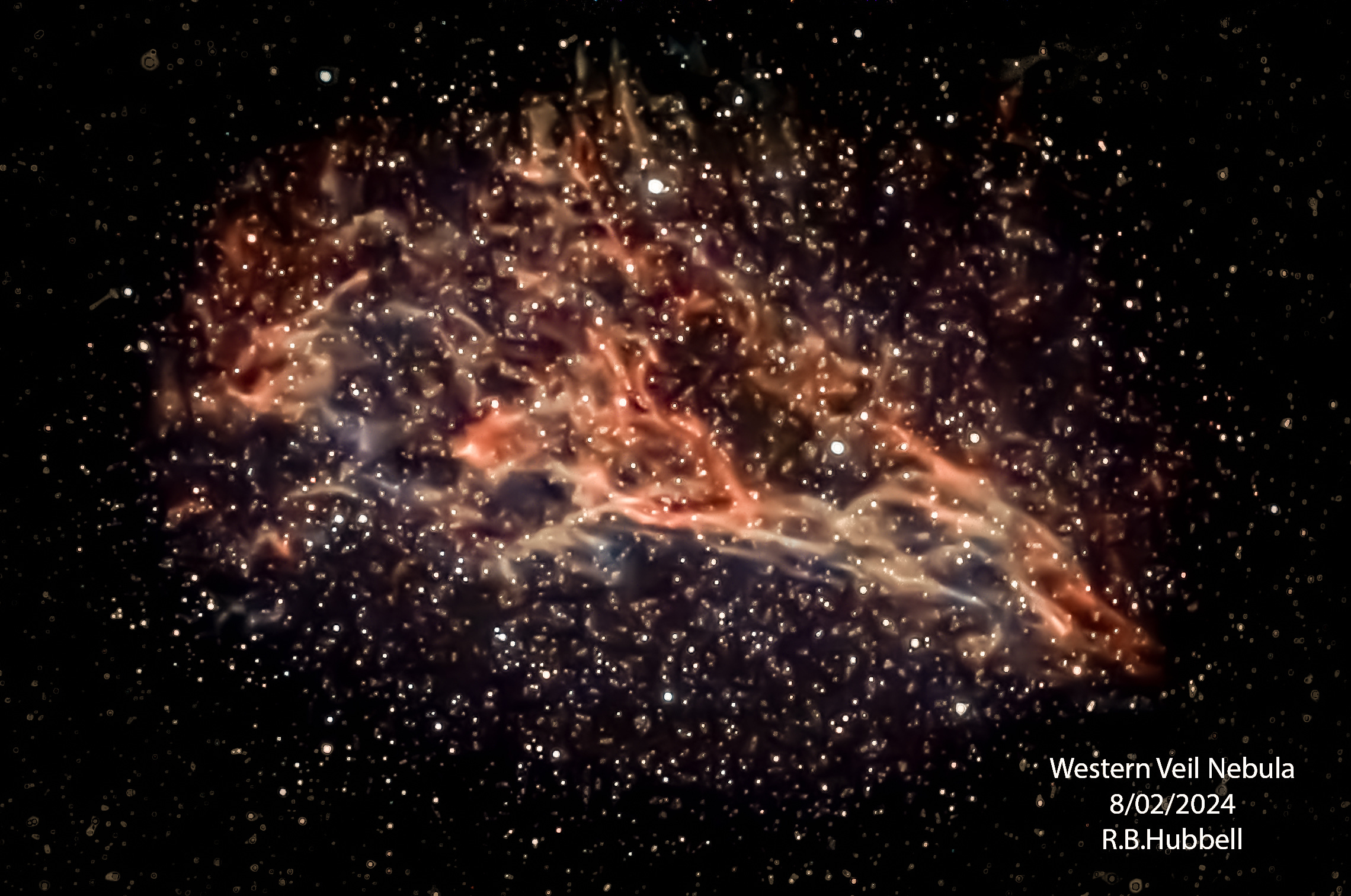 The photo below was my first attempt at imaging the Western Veil Nebula. it was a weak effort. I captured below the “Pickering’s Triangle” portion of the Western Veil Nebula. And my image captured none of the delicate blues and greens that later images show. I look back on this relatively recent photo and realize how far I have come in little more than a year of astrophotography.