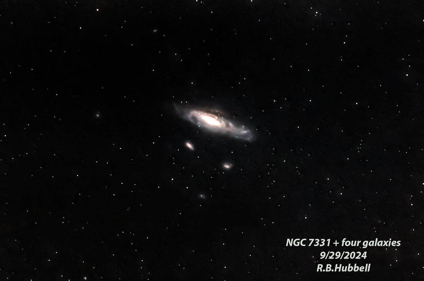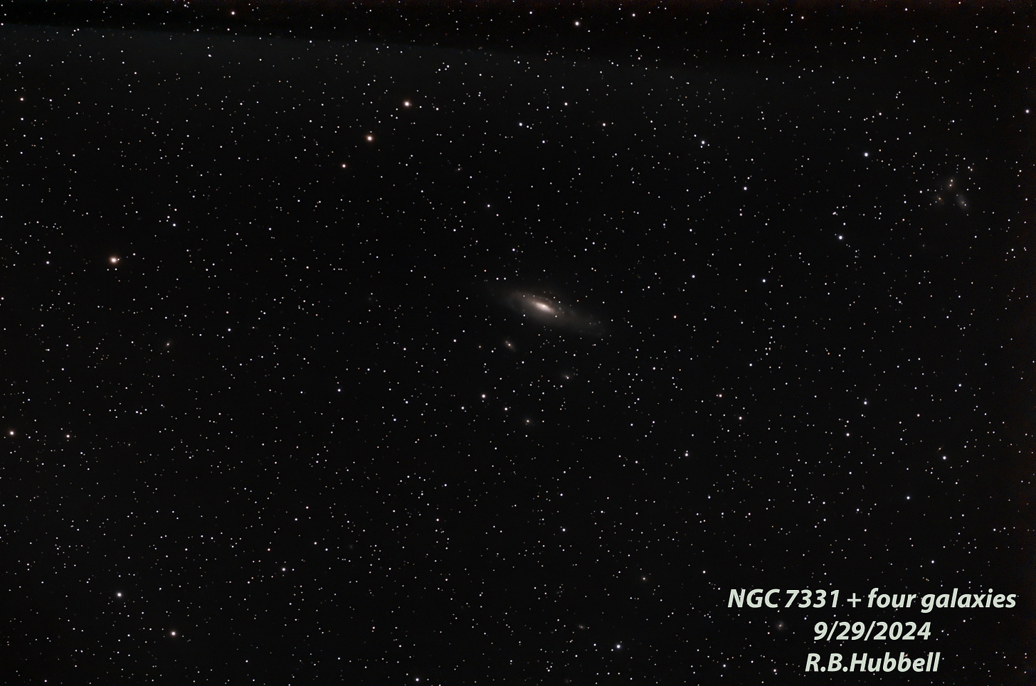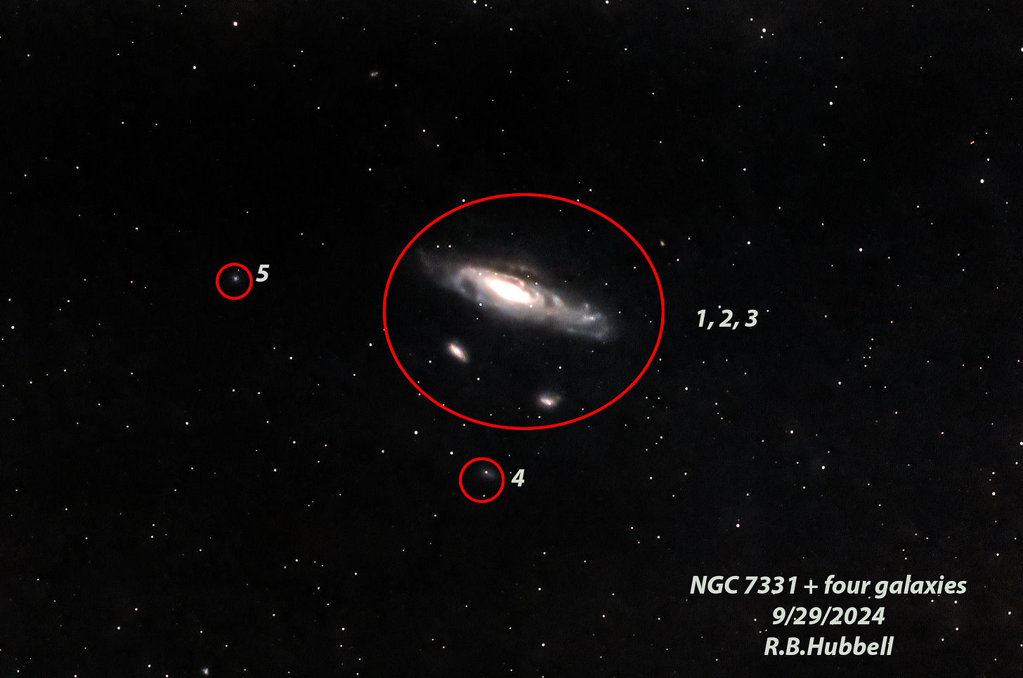 The image below highlights the NGC 7331 and the four other galaxies. For those of you who might remember my images of Stephan’s Quintet, NGC 7331 and the four galaxies shown below are a different set of five galaxies that can be captured in a single field of view.
