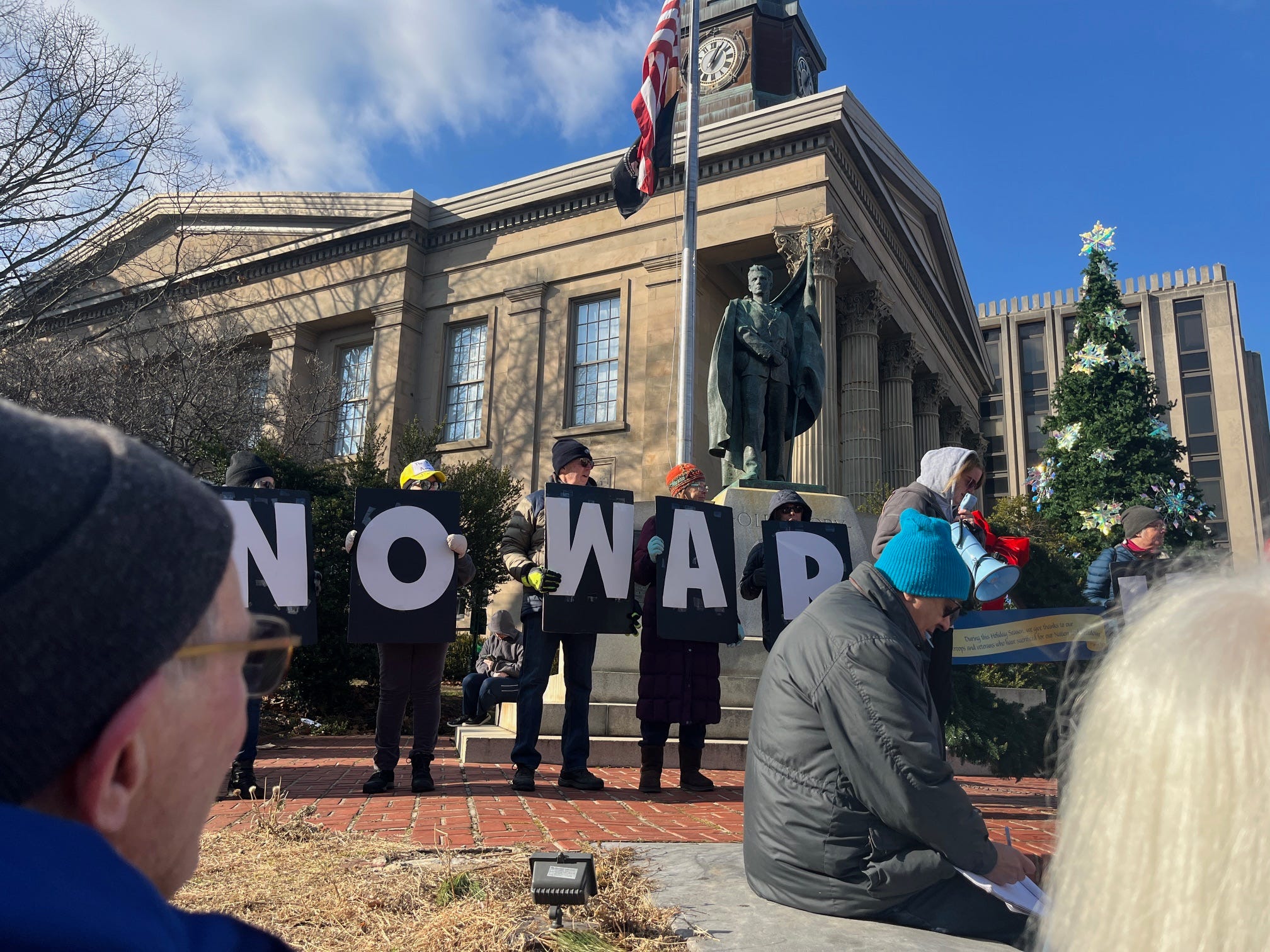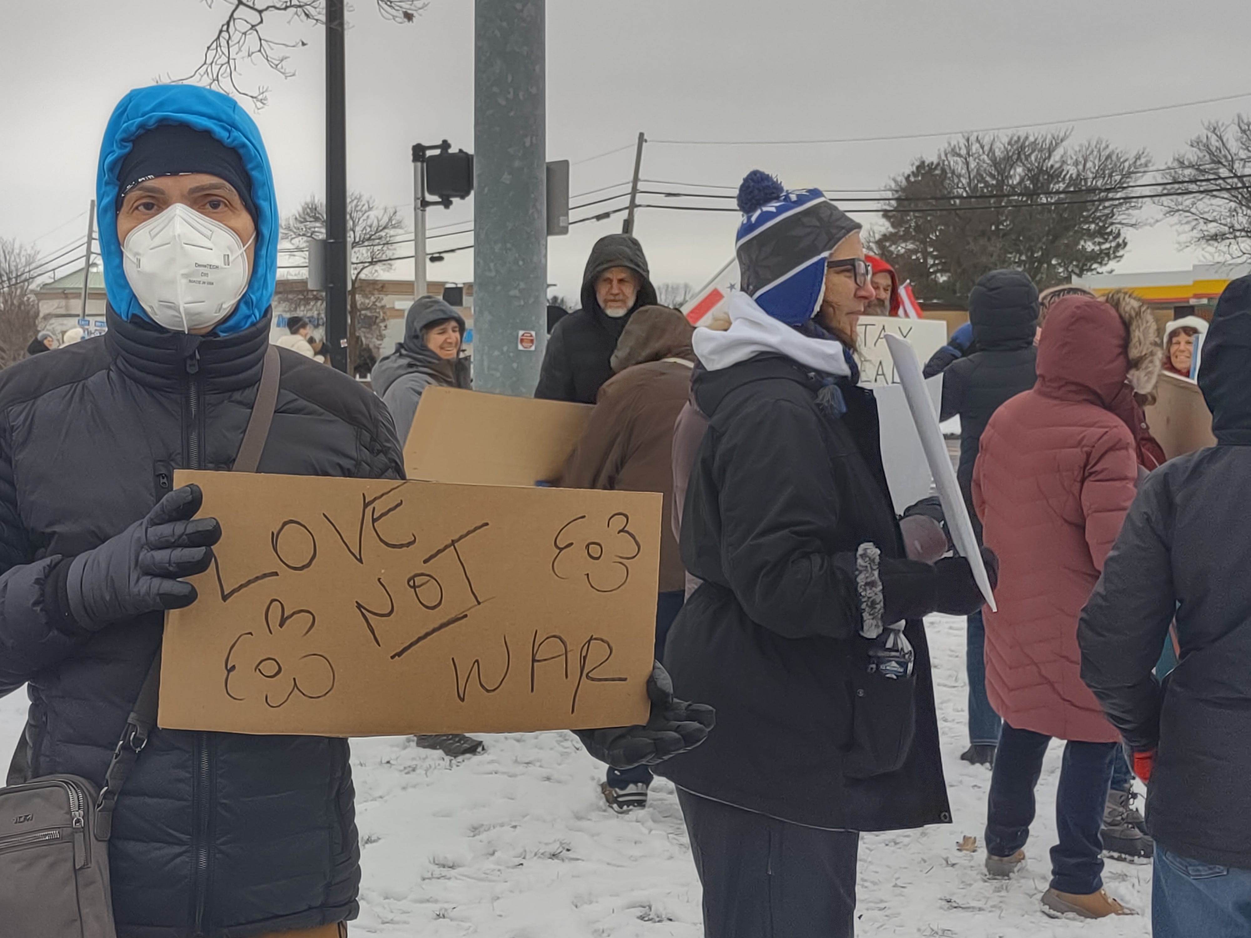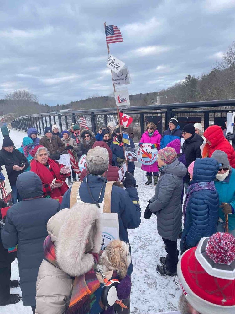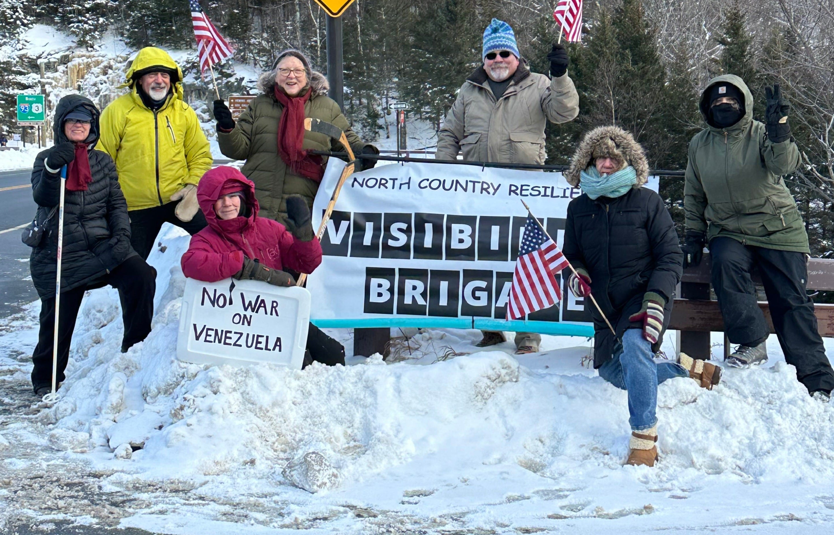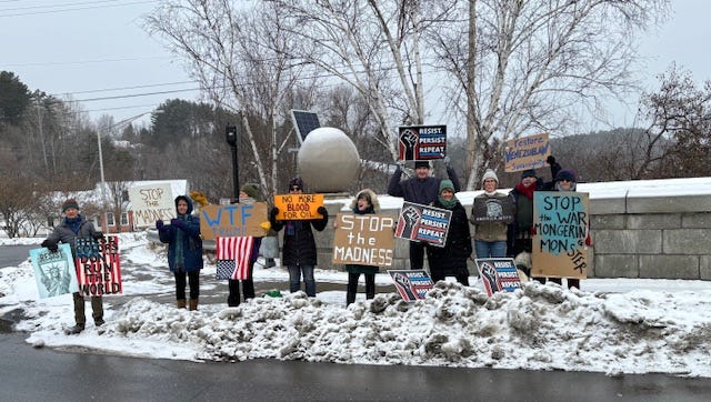 It was a balmy day of 18 degrees in Norwich, Vermont. We needed to feel connected to protest against the madmen and the military in what they did to Venezuela. We all felt the need to Rise Up and bring awareness for others to do the same.