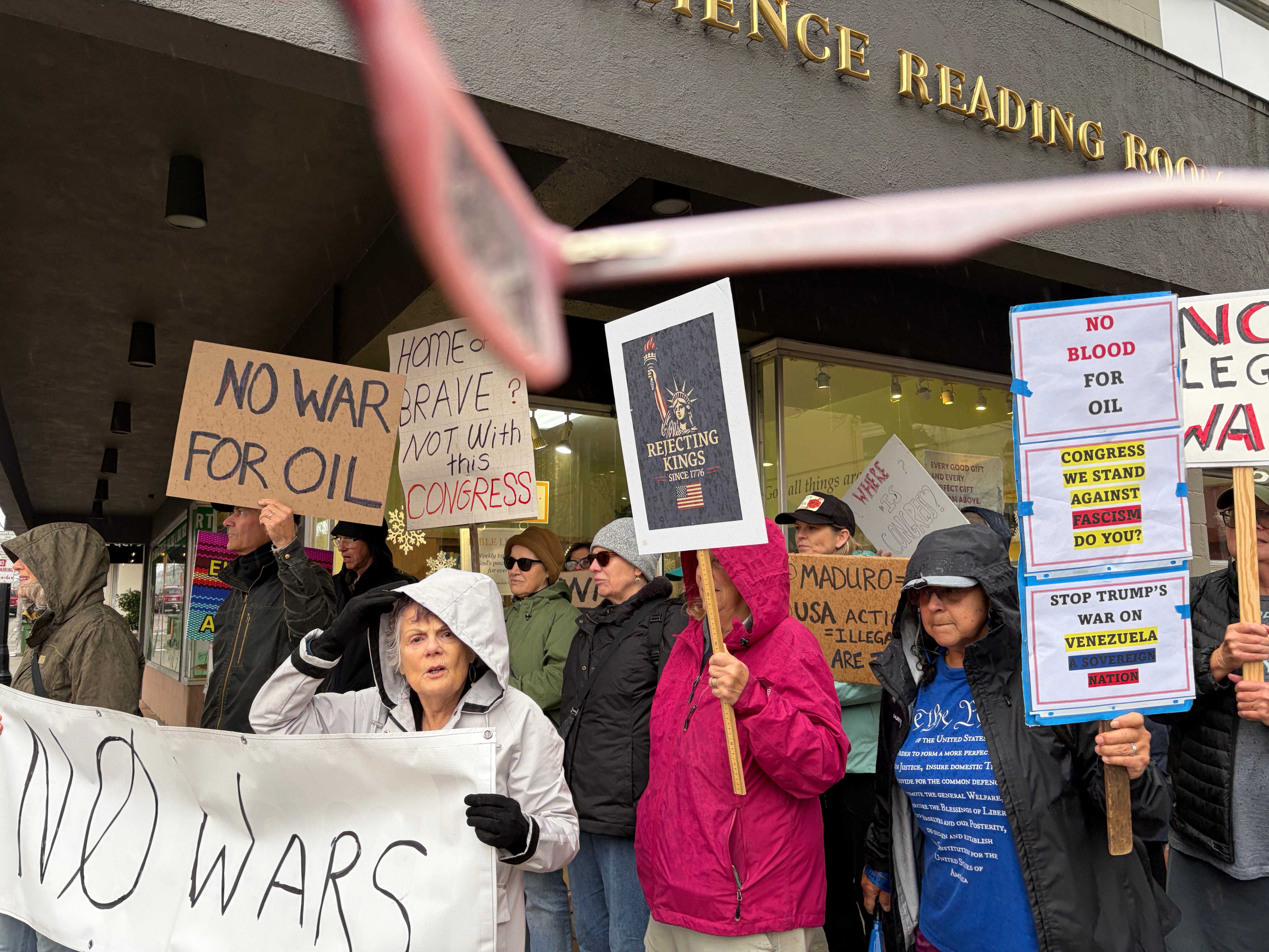 A small but mighty group in Marin, CA, who braved flooded roads and inclement weather to spontaneously protest.