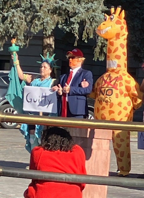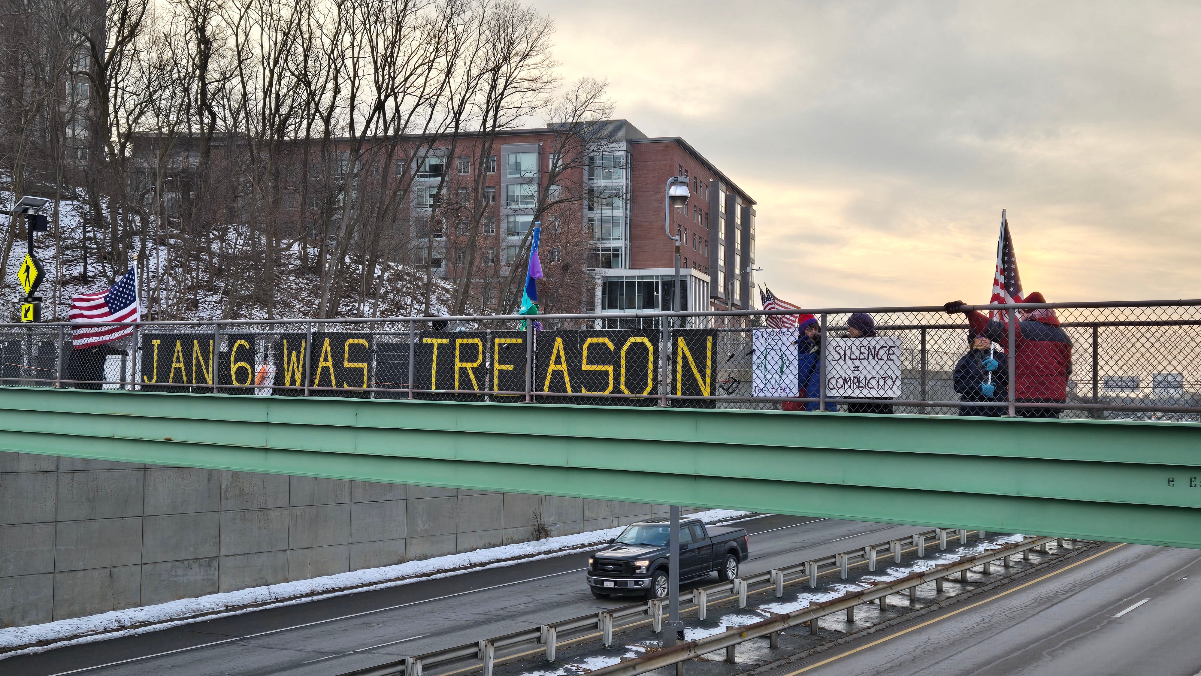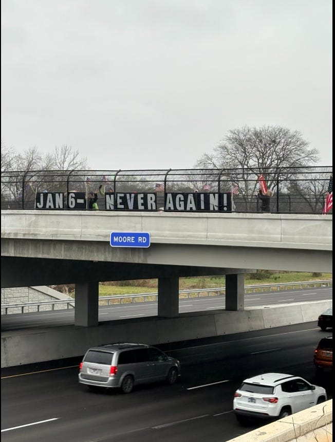 Here's a photo from the January 6 remembrance demonstration in Denver yesterday, courtesy of my wife. (I stayed home to mind the young puppy, a guide dog in training.) I hope it brings you a smile.