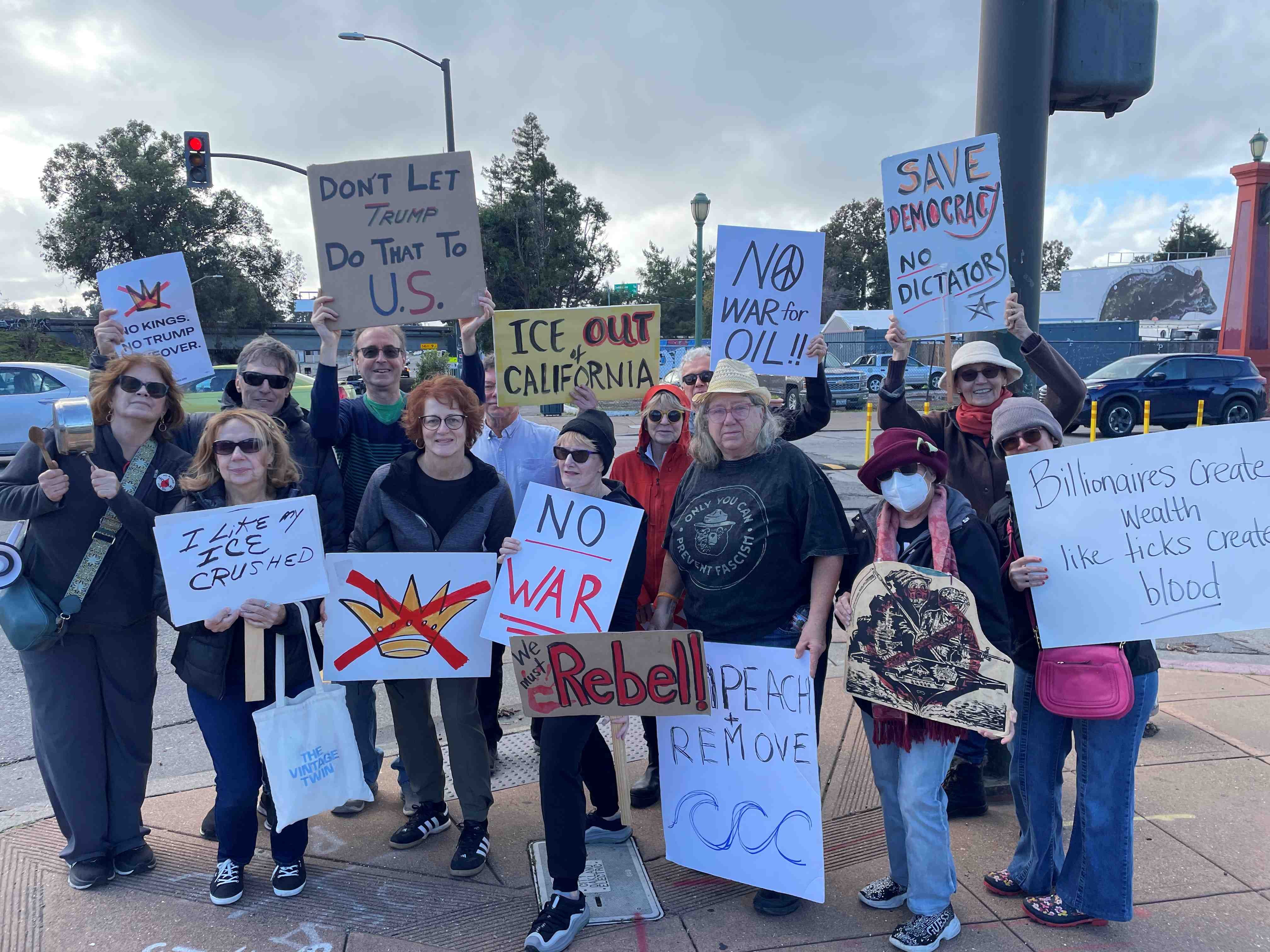 17 of us came out to our weekly protest in Oakland, CA! On the first Saturday of the year, a rainy Saturday, and only one person had confirmed they would attend. People were honking and waving like crazy in support.
